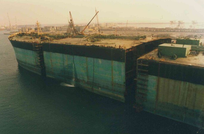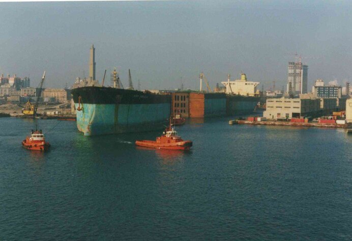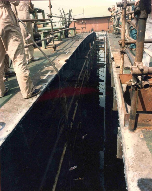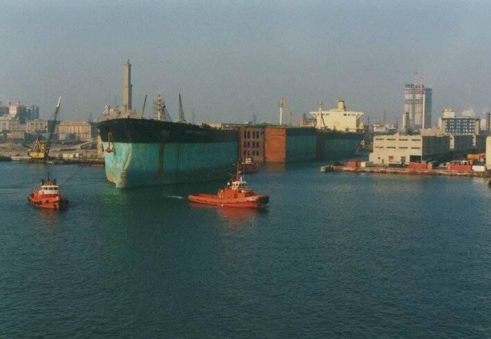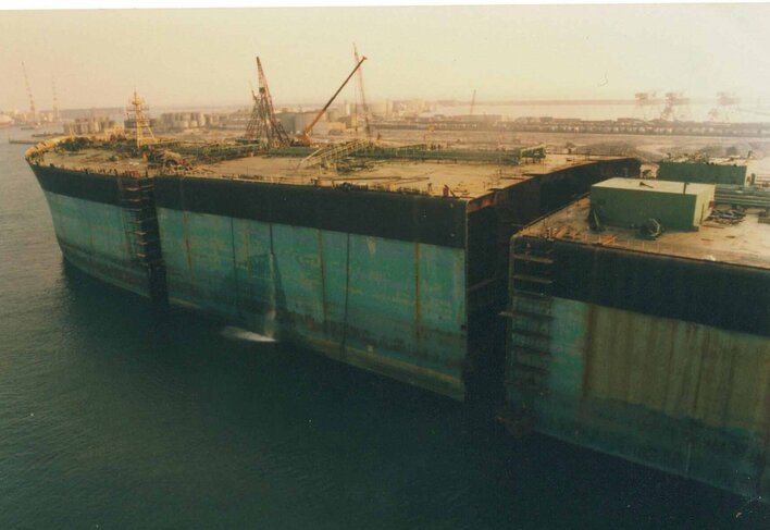 Operazioni di rimozione di un tratto del corpo cilindrico di nave petroliera.perazione effettuata a Trieste, con rimozione del corpo cilindrico a nave galleggiante e riunione dei due corpi in bacno.
