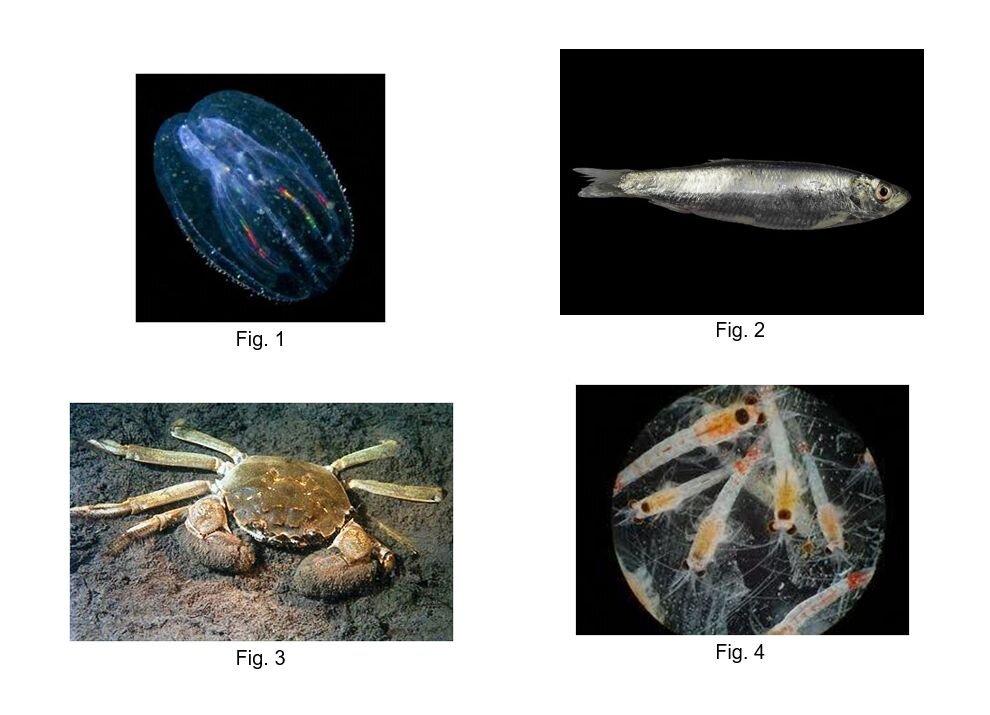 Mnemiopsis leidyi del Nord America (Fig. 1), detta anche ctenophora. Originaria delle coste del Nord America, questa medusa si è insediata nel Mar Nero a partire dagli anni 90, distruggendo le acciughe e la papalina (Renga, simile alla sardina) (Sprattus sprattus balticus Fig. 2), per poi diffondersi nelle acque del mare del Nord e del mar Baltico.