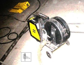 Si noti, che contrariamente alle abitudini, i due pezzi da saldare, sono entrambi collegati al polo negativo del generatore-